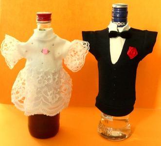 Ciekawa propozycja dla chcących uświetnić swoje wesele. Misie Patysie prezentują koszulki na butelki, wykonane na tę jedyną okazję. Bierzesz ślub? Zamierzasz go wziąć ? Nie wahaj się i ozdób butelki slicznymi ubrankami.